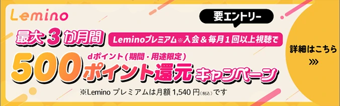 【!】キャンペーンにエントリーしたdアカウントで「Lemino」にログインして対象作品の視聴をお願いいたします。【!】