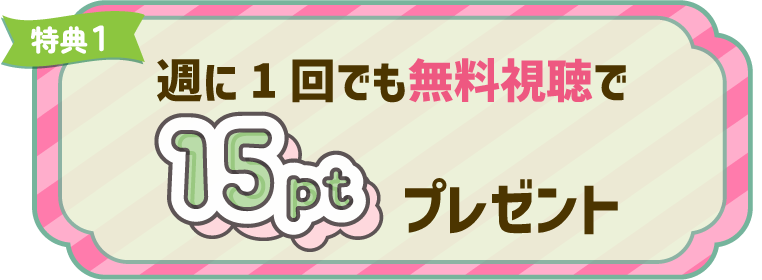 各週、1回以上の視聴で15ptプレゼント!