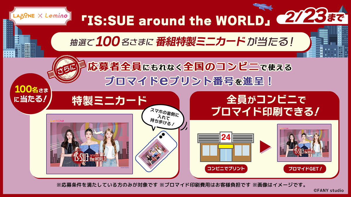 - 2.. 『 IS:SUE around the WORLD 』ブロマイドeプリント番号送付 / エントリーかつ応募条件を満たした方全員