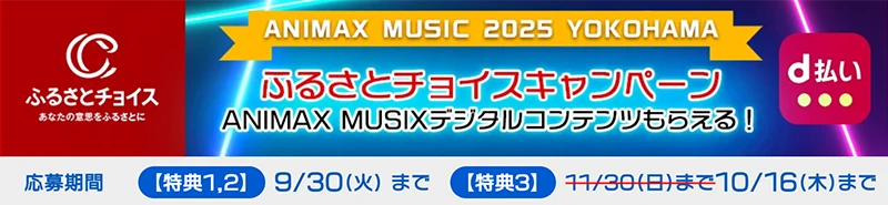 株式会社NTTドコモ(以下「当社」といいます)が実施する「ANIMAX MUSIX 2025 YOKOHAMA Leminoプレミアム会員キャンペーン」(以下「本キャンペーン」といいます)は、この規約(以下「本規約」といいます)に従って実施されます。以下の内容をご確認いただき、同意いただいた上でご応募ください。