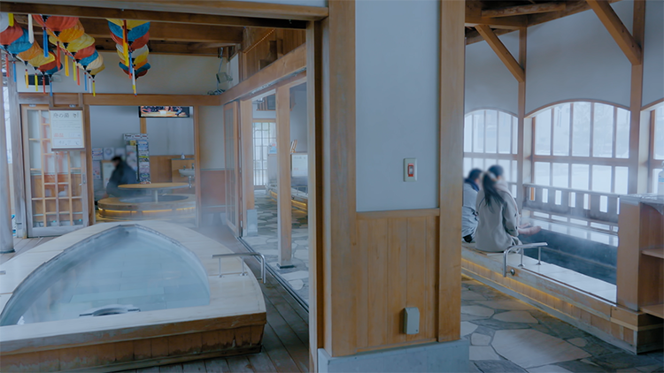 「天の湯」は、野天風呂の“開放感”からのんびりとお湯を楽しむことができ、「地の湯」は、湯けむりの中の湯治場的“抱擁感”で心も身体も癒される。