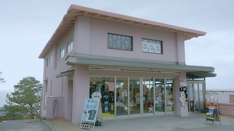 東尋坊の崖にちなんだ人気の「がけっぷちTシャツ」や「がけっぷちグッズ」など、ここでしか買えないユニークな商品を数多くを販売している。