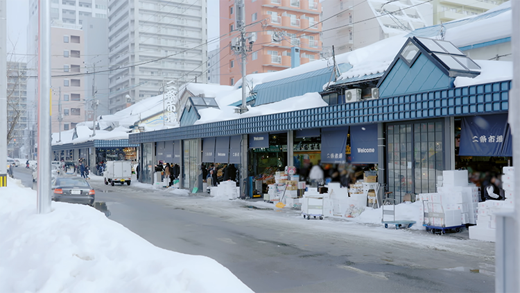 明治初期、石狩浜の漁師が新鮮な魚を売り始めたことがきっかけで開設されたと言われる歴史ある市場。