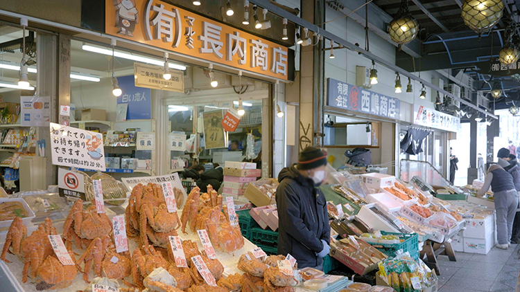 目利きのプロがこだわって仕入れたカニや鮭など新鮮な海産物を販売している。