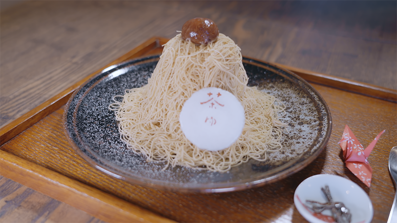 落ち着いた本格的な和空間のお座敷甘味処の2階では、お好みのフレーバーを特製最中やどら焼き、モンブラン等の組合わせで楽しむことができる。