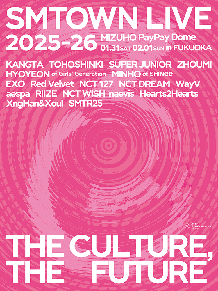 - ・「SMTOWN LIVE 2025-26 in FUKUOKA」(以下「本ライブ」といいます)は、株式会社SM ENTERTAINMENT JAPANによって実施されます。本ライブへの参加にあたっては、公式サイト(https://smtown-official.jp/smtownlive_2025_26_fukuoka/)をご確認の上、注意事項や規定を遵守し、必要な手続きを履践するものとします。